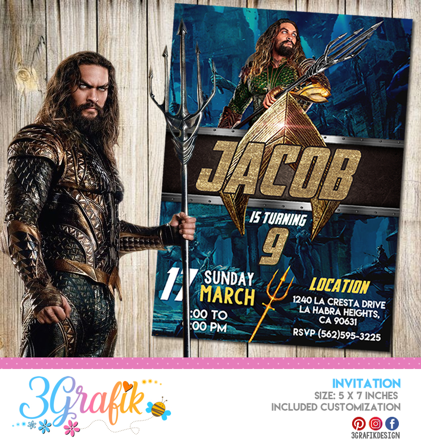 Aquaman invitation to surprise your guests with this fabulous design, full of originality and creativity, fully customizable to your liking.