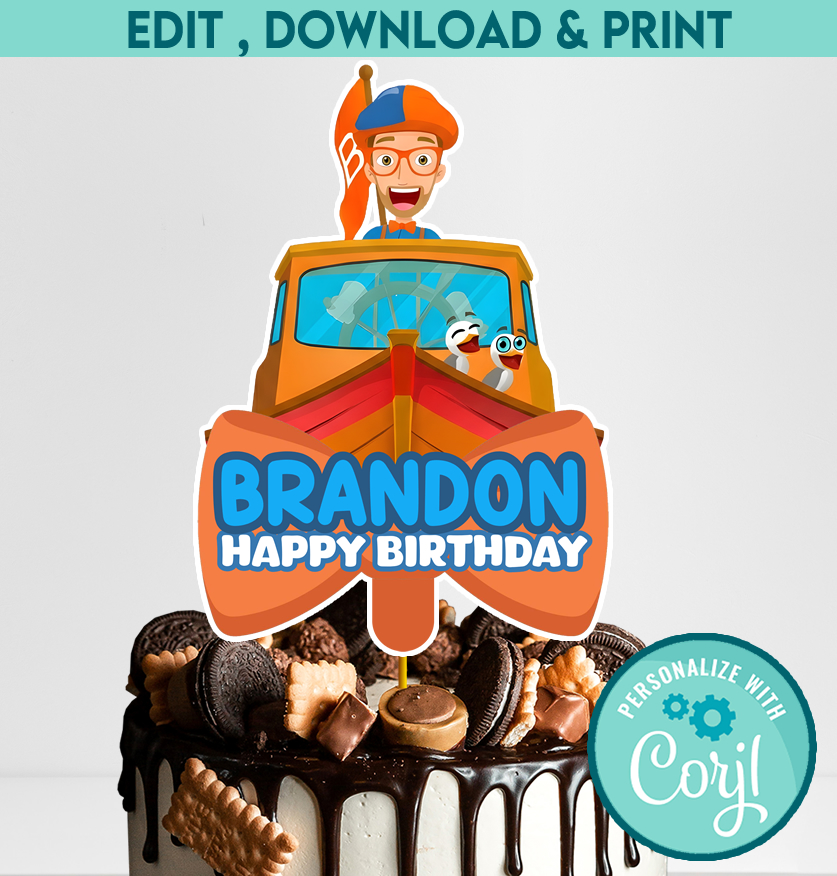 Blippi-Inspired Editable Birthday Cake Topper | Printable | Personalize with Corjl | Instant Download