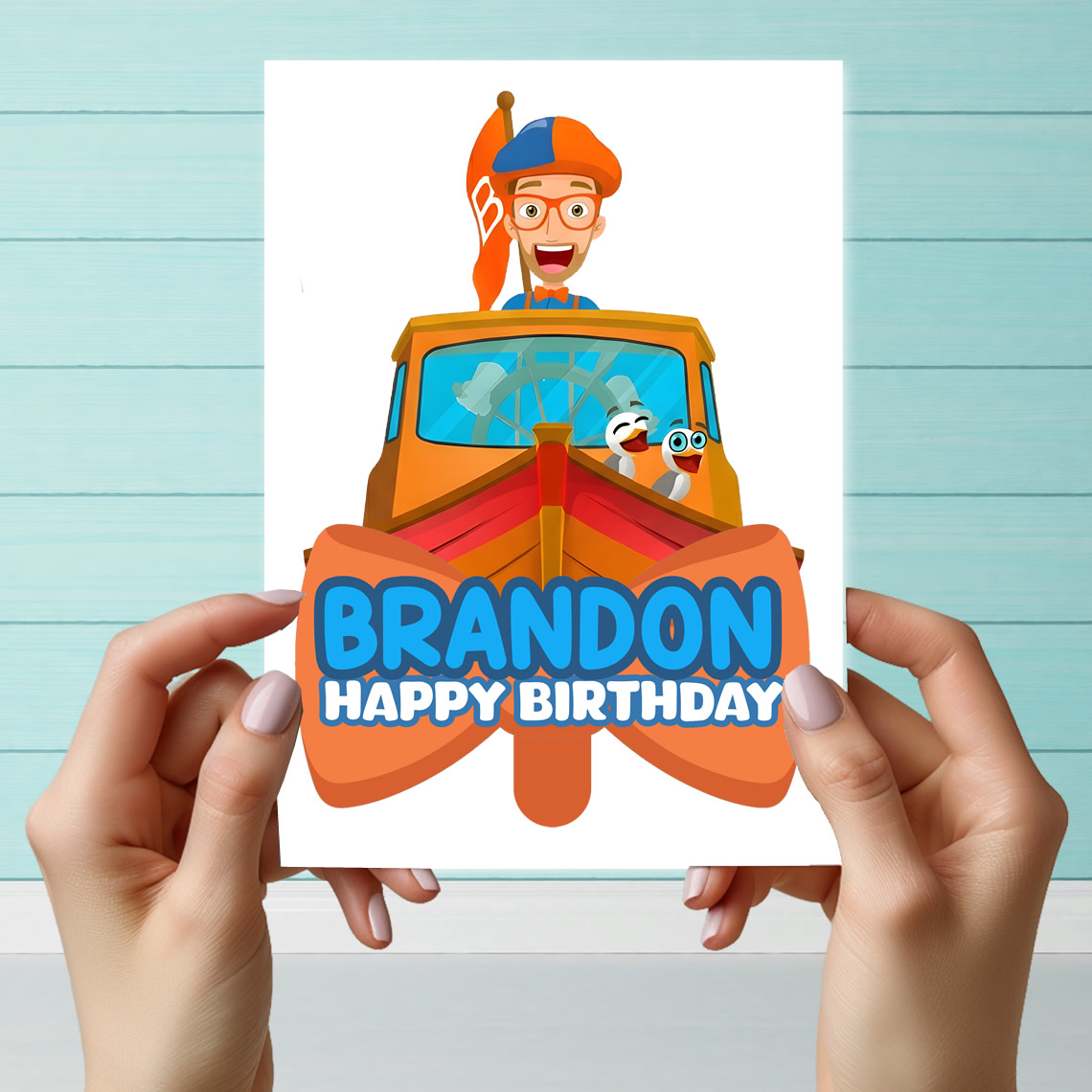 Make your child’s Blippi birthday party extra special with a unique, personalized cake topper!