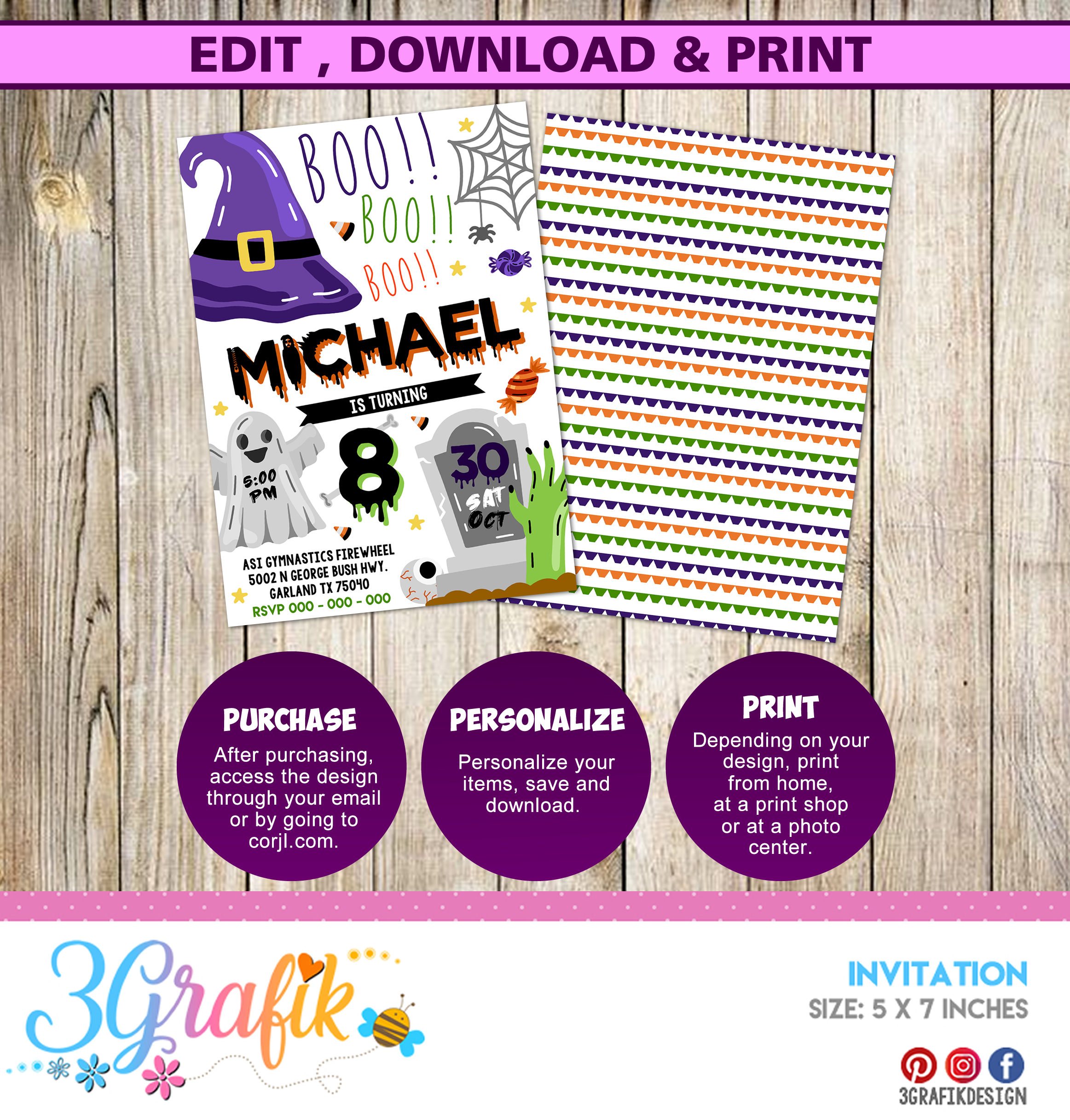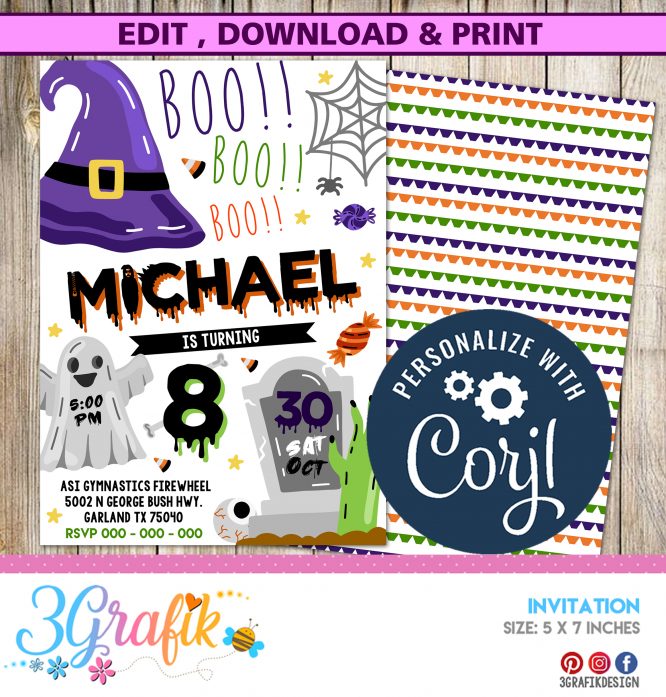 Boo Halloween invitation for your party, you can edit it, download and print.