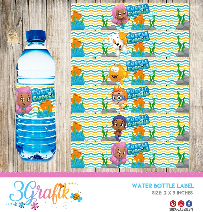 Bubble Guppies Water Bootle Labels for the little children of home. Personalized bottles for wedding, birthday or other events. 100% waterproof stickers