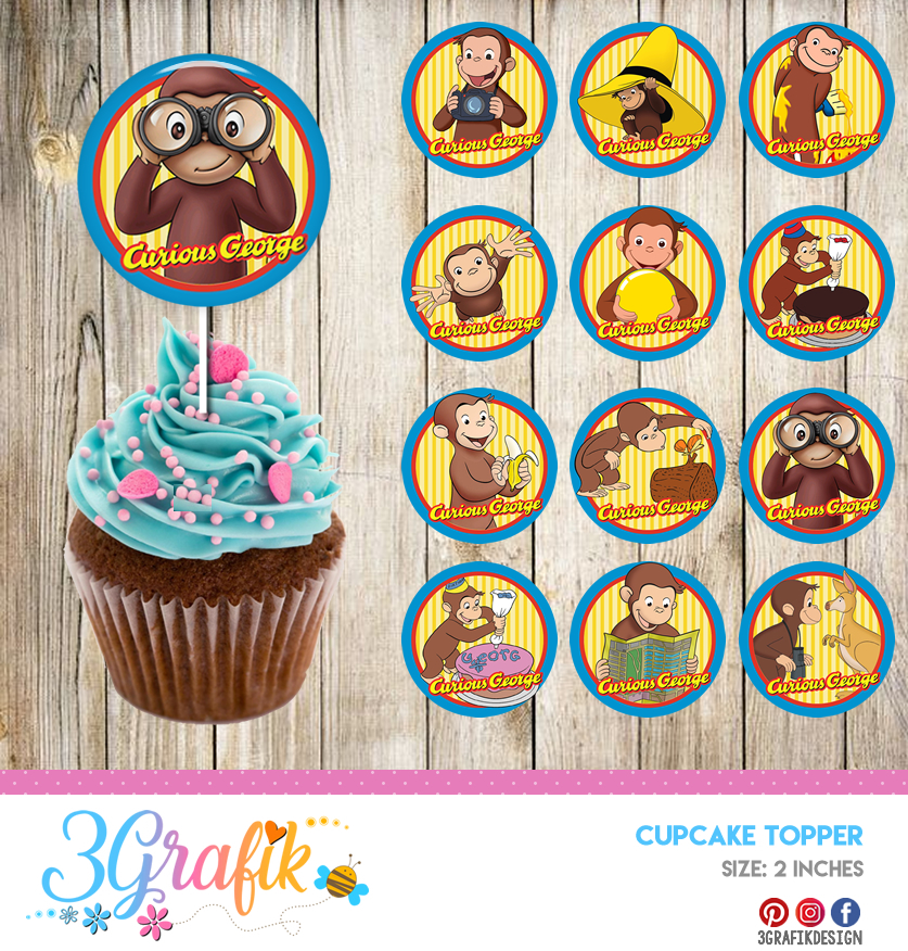 Curious George Cupcake Toppers – Printable Party Decorations for Kids Birthday (Instant Download)