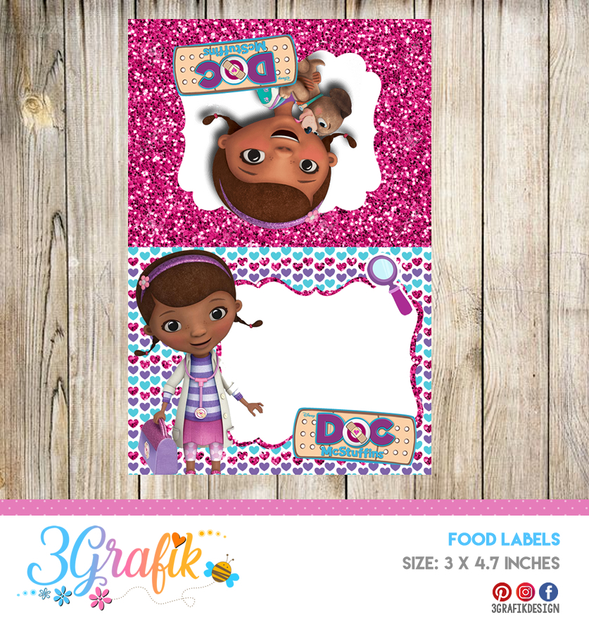 Doc McStuffins Food Tent Cards – Printable Party Labels for Girls Birthday (Instant Download)