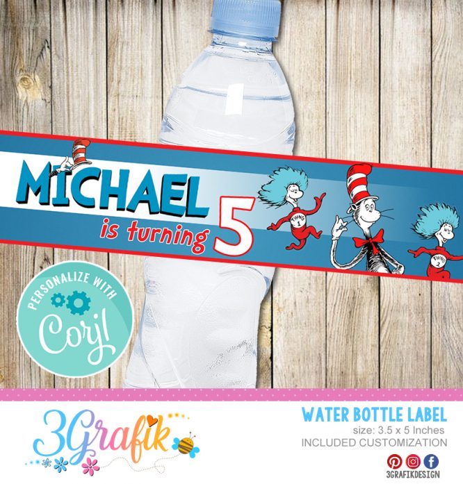 Dr. Seuss Water bottle Label for your events, provide additional details in your decorations in a unique way to keep all your guests surprised
