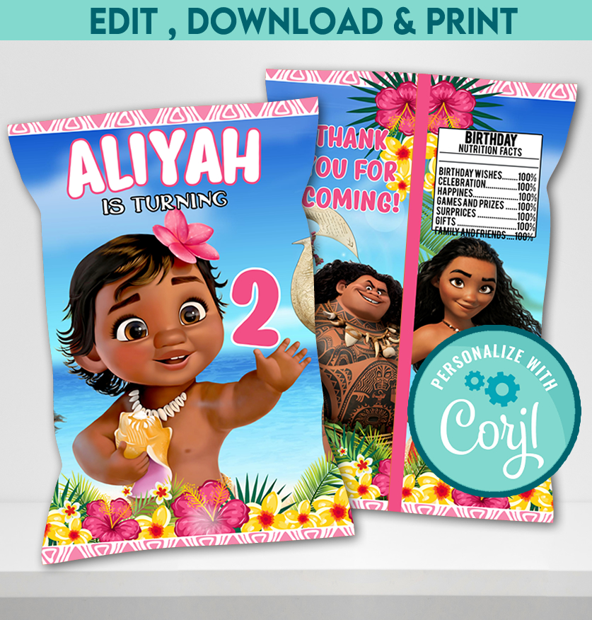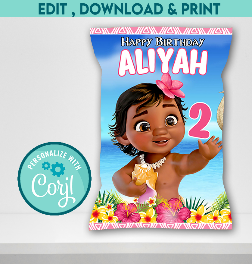 Editable Moana Chip Bag Template | Instant Download Tropical Party Printable