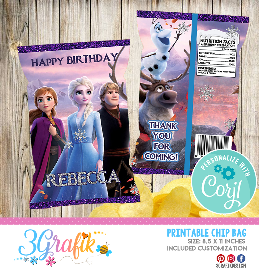 Frozen Chip Bag for your events, provide additional details in your decorations in a unique way to keep all your guests surprised