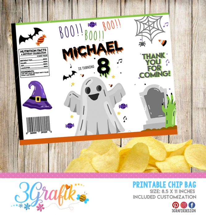 Ghost Halloween Chip Bag for your events, provide additional details in your decorations in a unique way to keep all your guests surprised