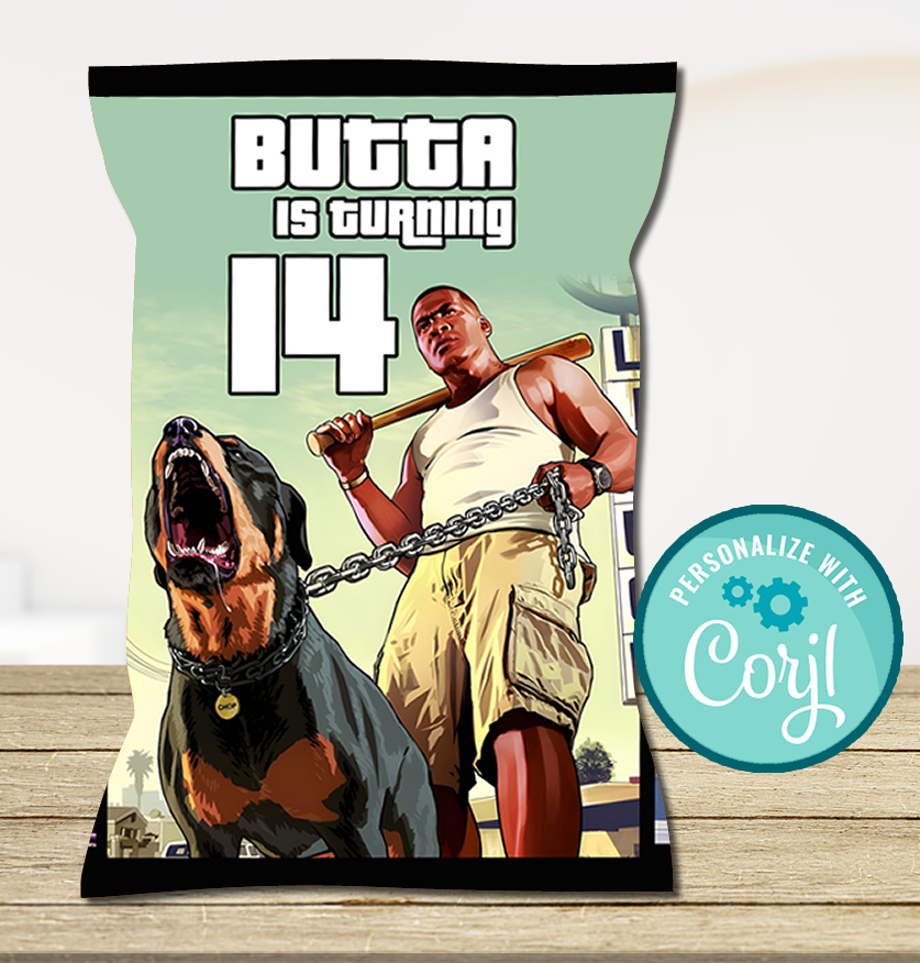 Grand Theft Auto Digital Chip Bag – Printable Party Favor 🎮