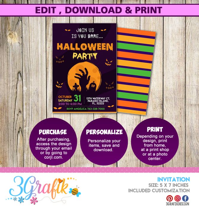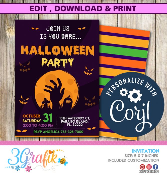 Cemetery Halloween invitation for your party, you can edit it, download and print.