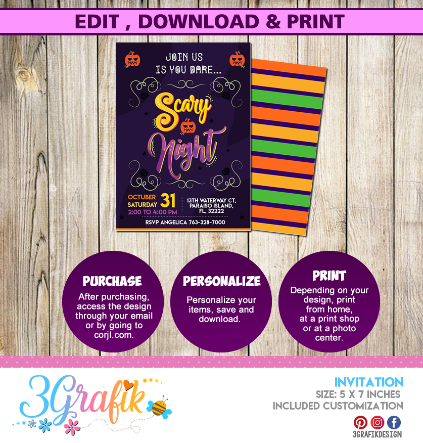 Halloween invitation for your party, you can edit it, download and print. Easy, Fast and cheap. Give a spooky and original touch to your party