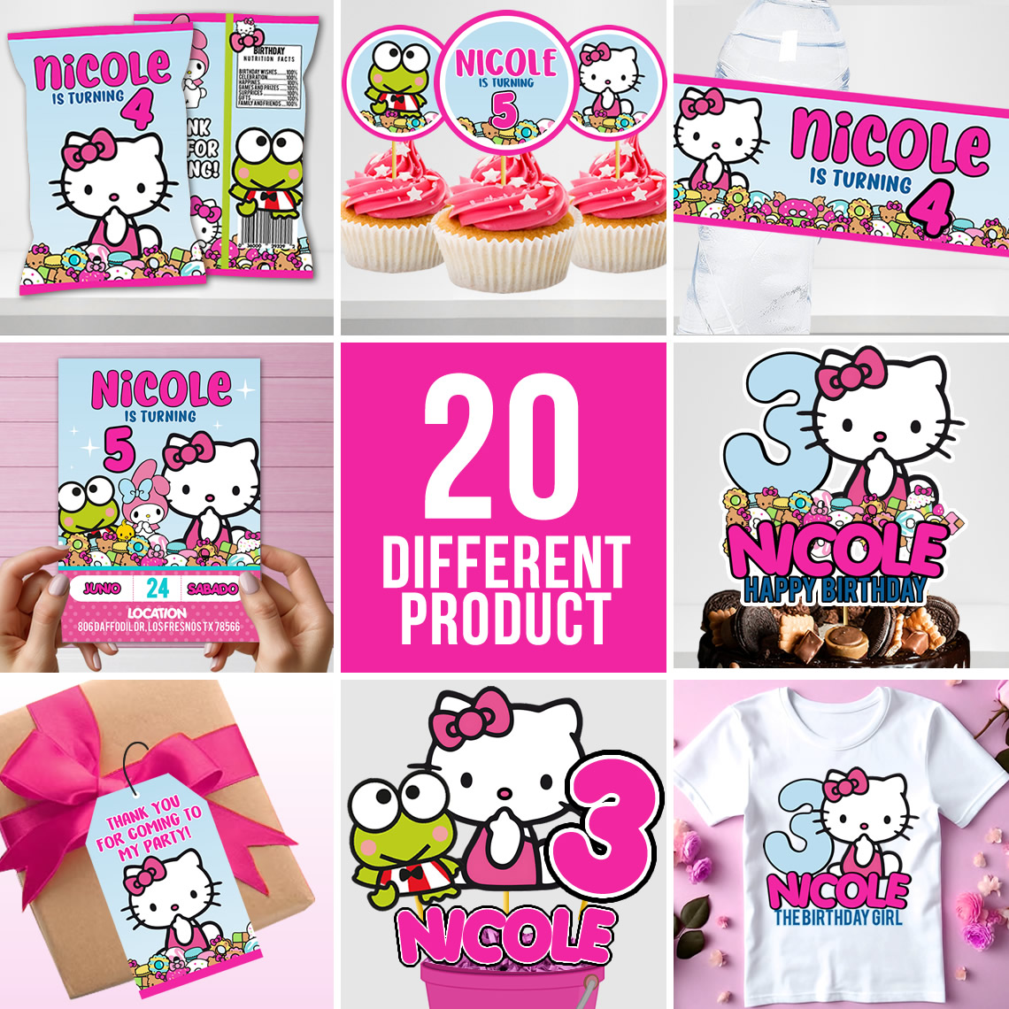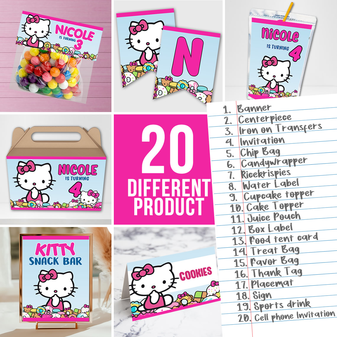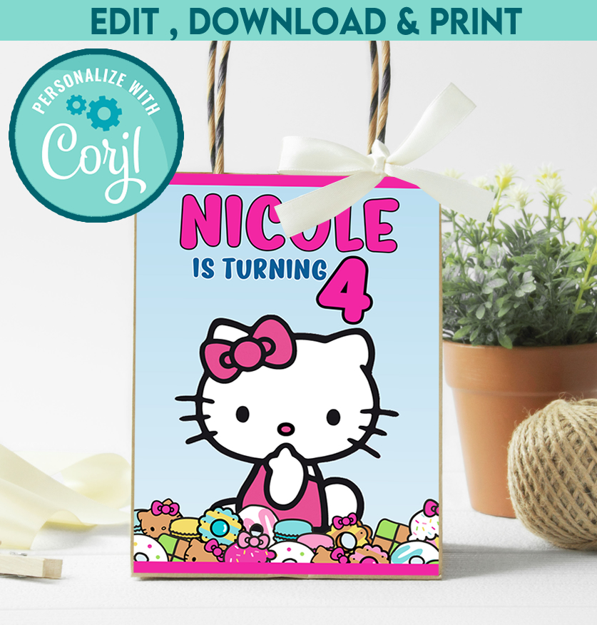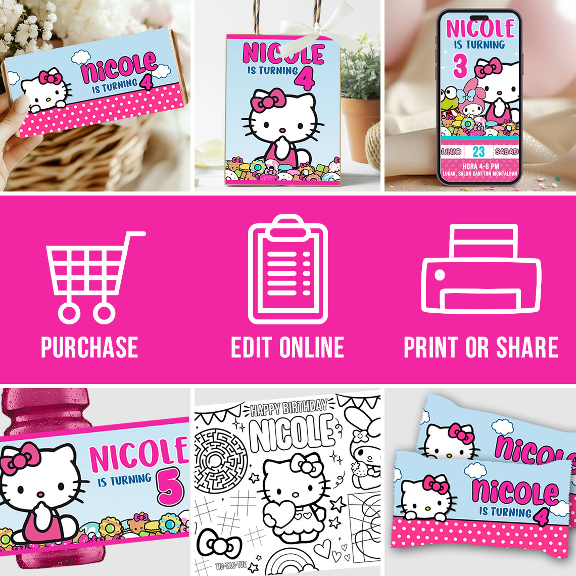 Hello Kitty Editable Party Bundle – 20 Printable Decorations for Girls Birthday (Corjl Instant Access)