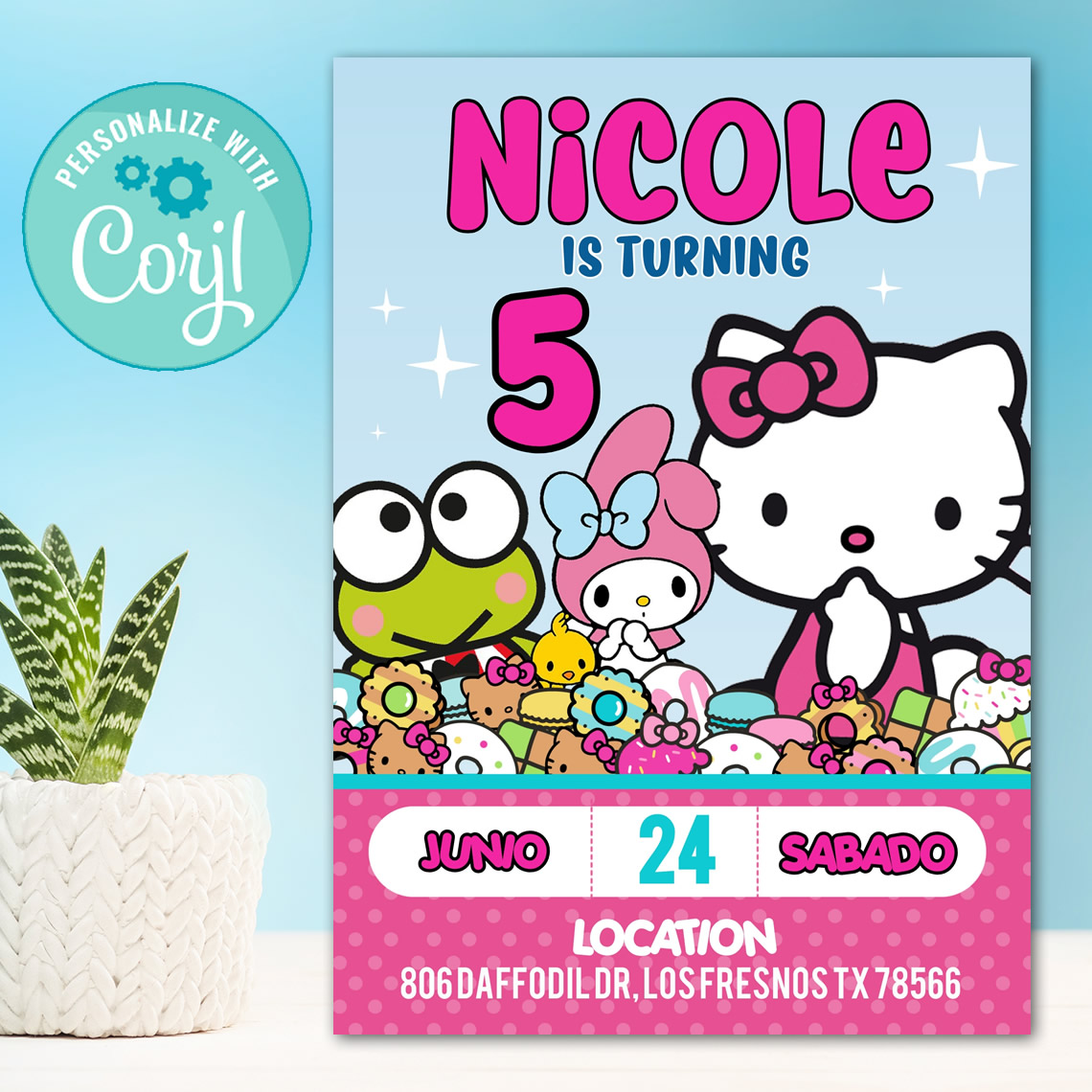 Celebrate in style with this adorable Hello Kitty party bundle, featuring 20 editable and printable decorations to create a perfectly coordinated birthday celebration! Customize each item easily in Corjl — no software required. Just edit online, download, and print from home. This DIY-friendly kit includes everything you need: invitations, banners, treat bags, cake toppers, and more. Whether you’re planning a party for a little Hello Kitty fan or organizing a themed event, this bundle makes decorating simple, fun, and personalized.