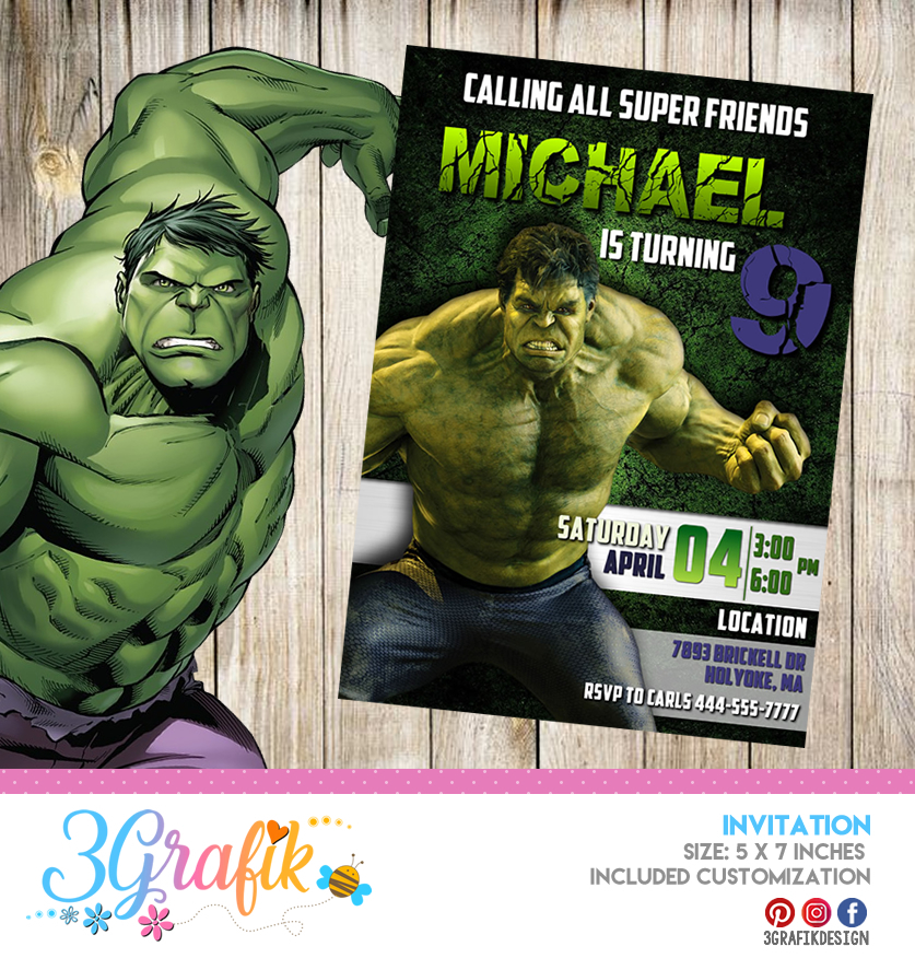 Hulk Avengers invitation to surprise your guests with this fabulous design, full of originality and creativity, fully customizable to your liking..