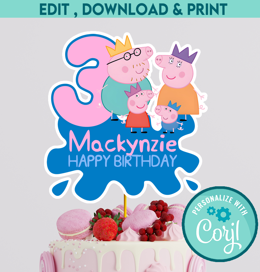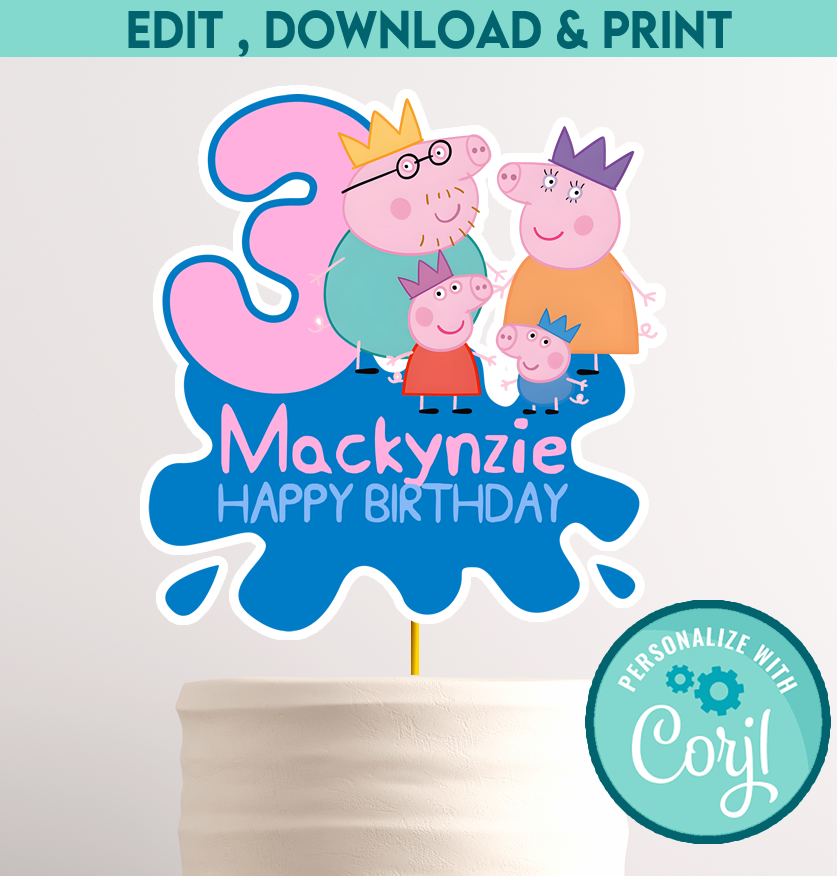 Instant Download Peppa Pig Cake Topper – Personalized Digital Party Decor – Edit Yourself in Corjl – Peppa Birthday Theme – DIY Printable Cake Centerpiece