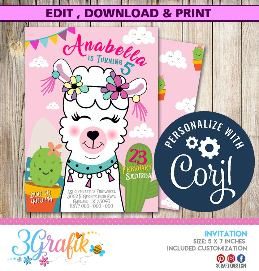 Llama Fun Birthday Invitation