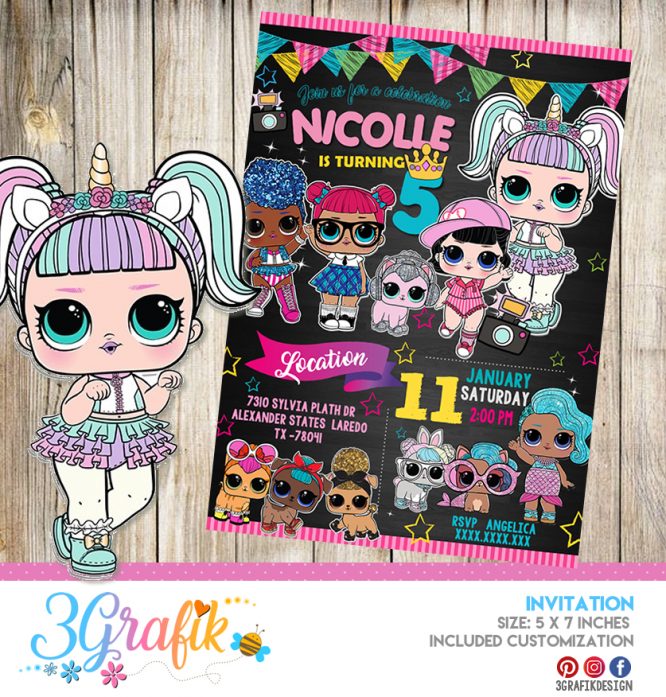 Lol Surprise invitation to surprise your guests with this fabulous design, full of originality and creativity, fully customizable to your liking.