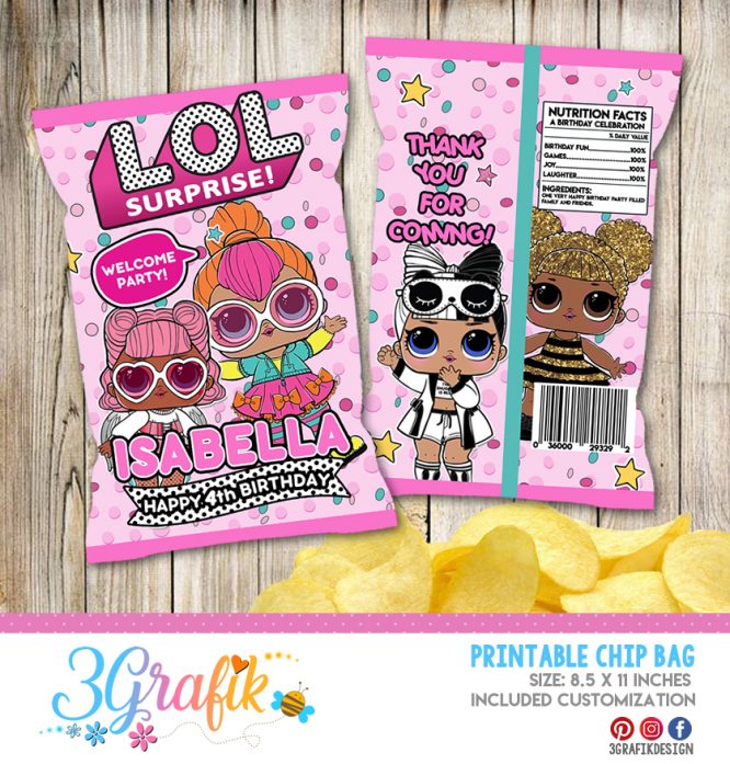 Lol Susprise Chip Bags printable for your events, provide additional details in your decorations in a unique way to keep all your guests surprised