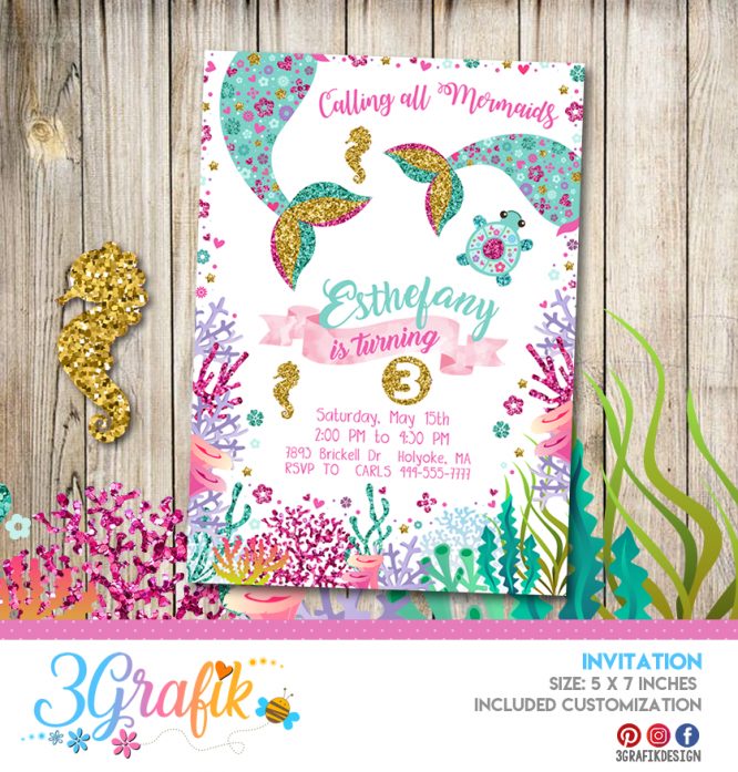 Mermaid invitation to surprise your guests with this fabulous design, full of originality and creativity, fully customizable to your liking.