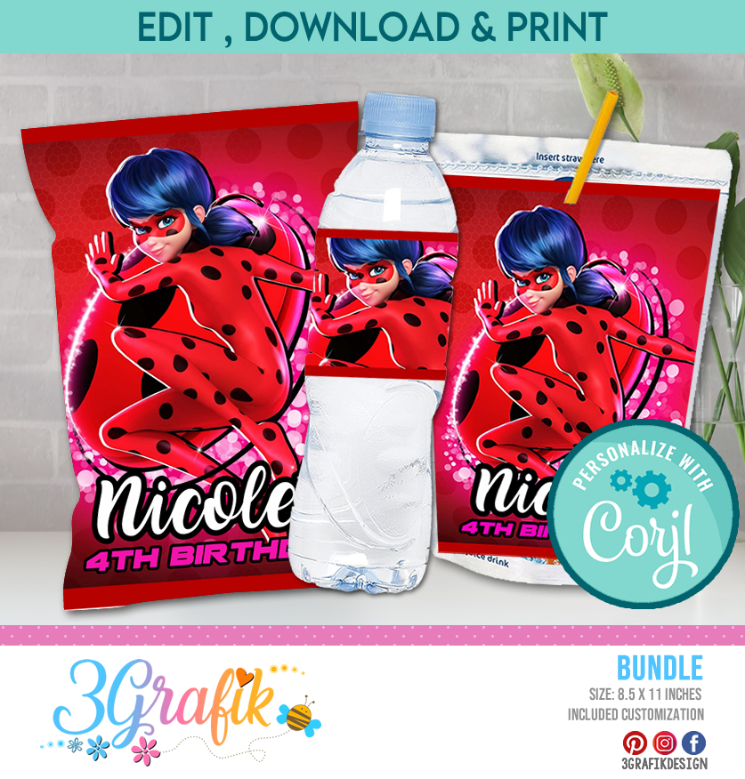 Miraculous Ladybug Bundle – Miraculous Chip Bag – Miraculous Caprisun – Miraculous Water Bottle label