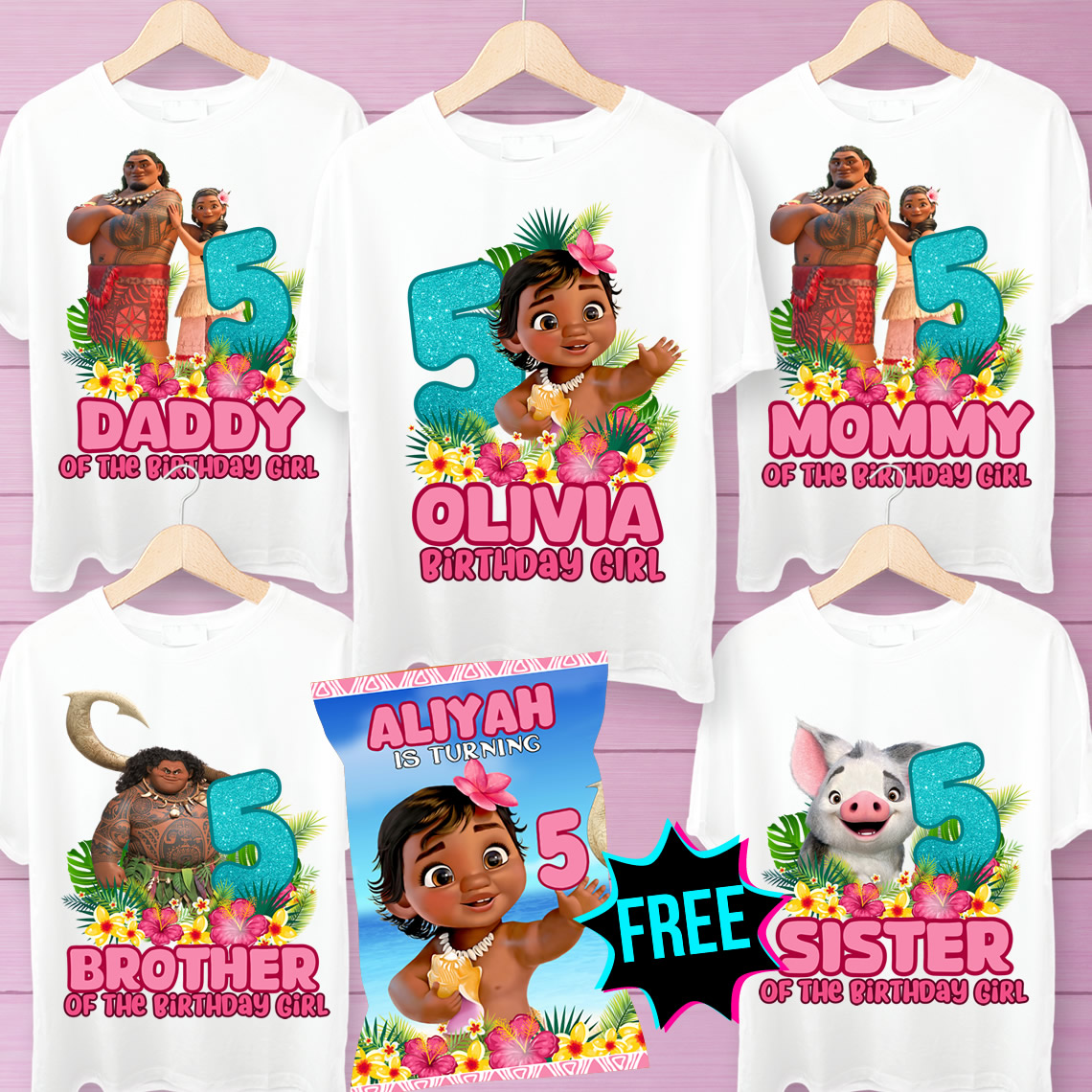 Celebrate your child’s special day with the whole family dressed in style! These personalized Moana birthday iron on transfers are designed for family shirts, making your tropical princess party unforgettable. Easy to apply, perfect for DIY outfits, and customizable for mom, dad, siblings, or the birthday child. Add a magical touch to your Moana‑themed celebration and create lasting memories with coordinated family party wear.