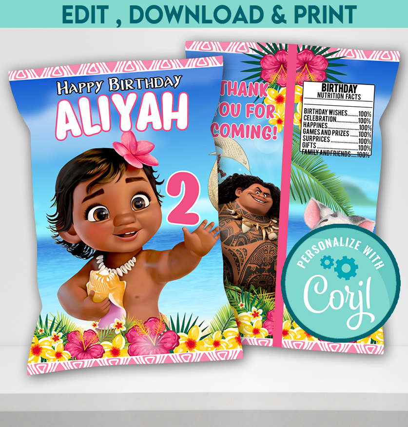 Moana Birthday Chip Bag Printable | DIY Party Favor Wrapper for Kids Birthday Theme