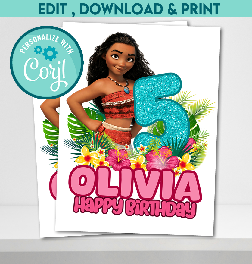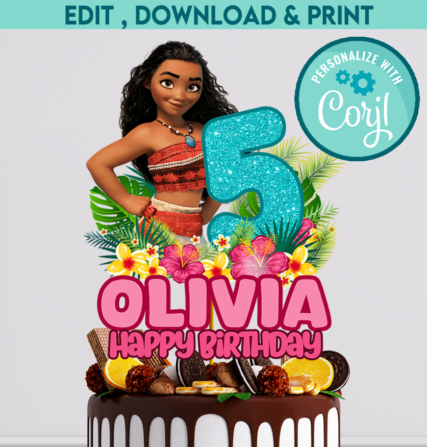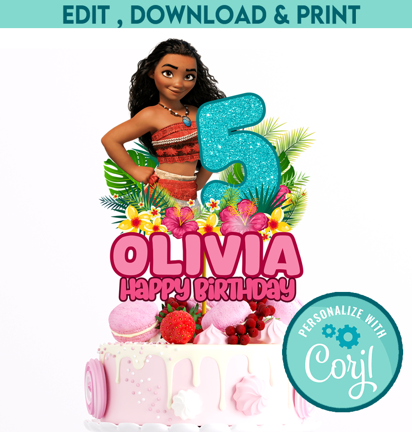 Make your celebration unforgettable with this editable Moana birthday cake topper! Perfect for ocean-themed parties, this printable design is fully customizable in Corjl—no software required. Personalize the name, age, or message directly in your browser, download instantly, and print at home for easy DIY assembly. Whether you’re decorating a birthday cake or adding flair to your dessert table, this topper brings island adventure and vibrant color to your setup. Quick to make, budget-friendly, and ideal for fans of Moana, it’s the perfect finishing touch for your tropical-themed party!