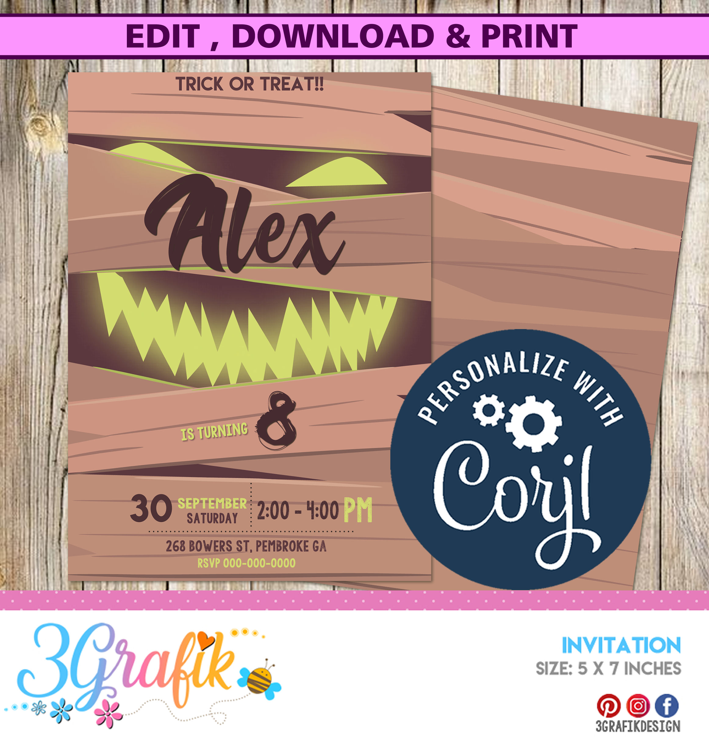 Mummy Halloween invitation for your party, you can edit it, download and print.