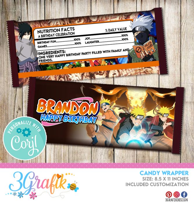 Naruto Shippuden Candy Wrapper Digital for your events, provide additional details in your decorations in a unique way to keep all your guests surprised