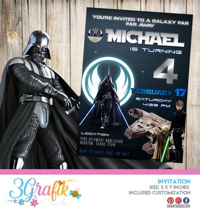 Star Wars invitation to surprise your guests with this fabulous design, full of originality and creativity, fully customizable to your liking..
