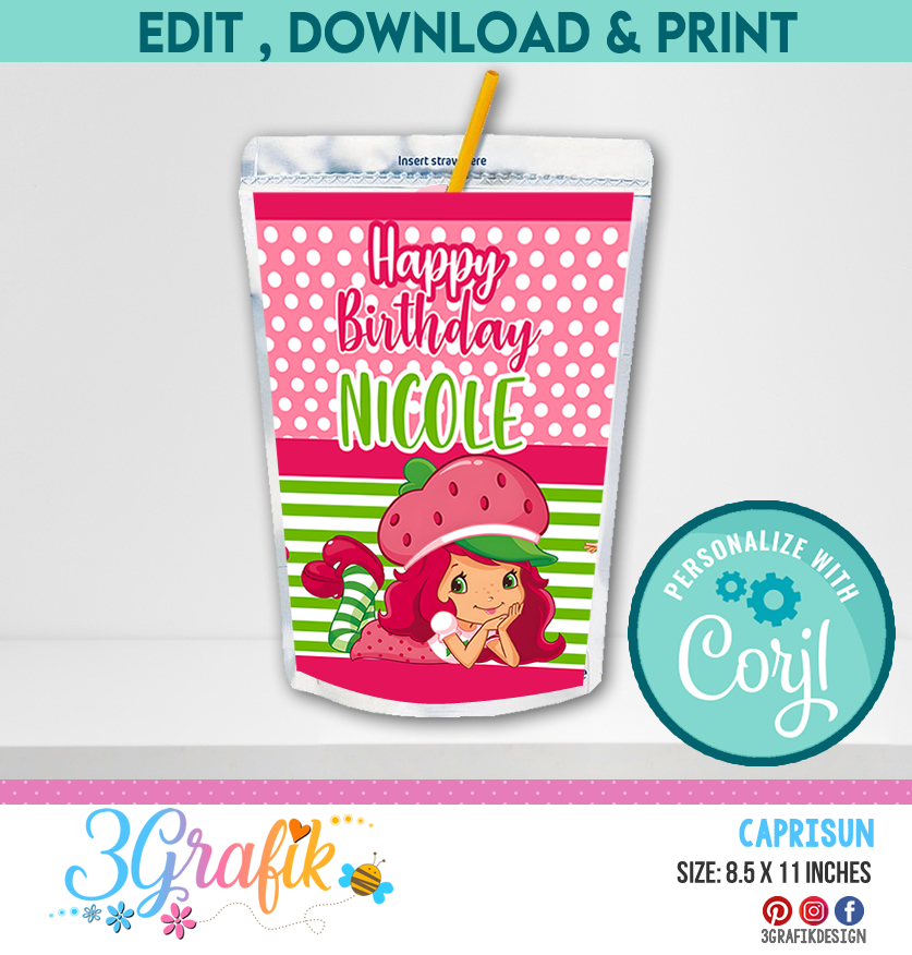 Editable Strawberry Shortcake Capri Sun Label – Printable Party Drink Wrapper