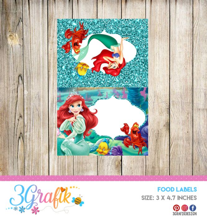 Ariel The Little Mermaid Food Tent Cards – Printable Party Labels for Girls Birthday (Instant Download)