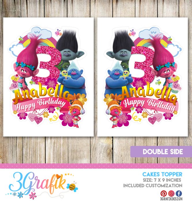 Trolls cake topper pennant for your events, provide additional details in your decorations in a unique way to keep all your guests surprised