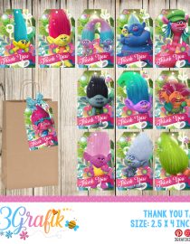 Trolls Water Bootle Labels for the little children of home. Personalized bottles for wedding, birthday or other events. 100% waterproof stickers