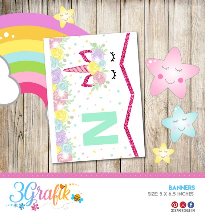 Unicorn 1st Birthday – Banners and Garlands – Printable