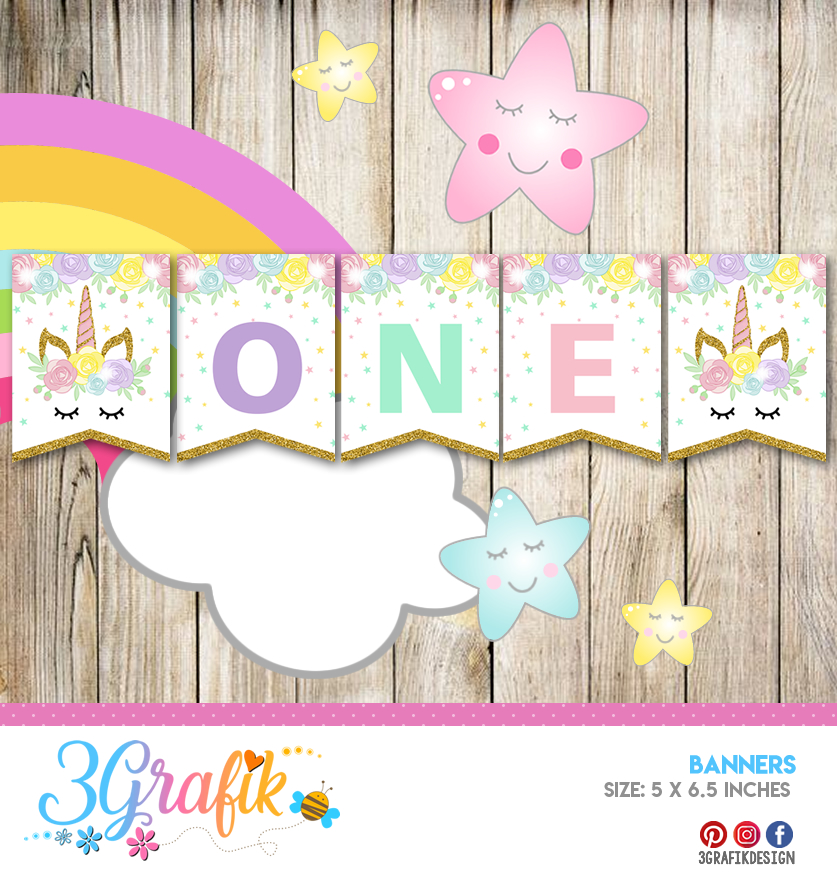 Unicorn 1st Birthday – Banners and Garlands – Printable