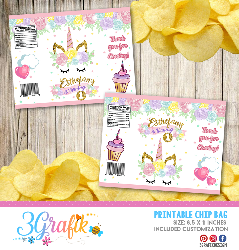 Unicorn Chip Bag for your events, provide additional details in your decorations in a unique way to keep all your guests surprised